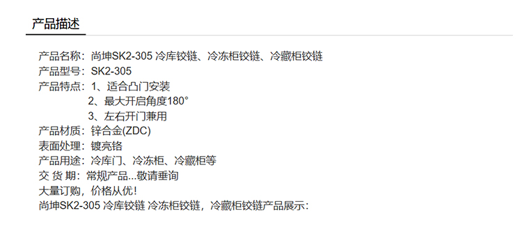尚坤SK2-305 冷库铰链、冷冻柜铰链、冷藏柜铰链