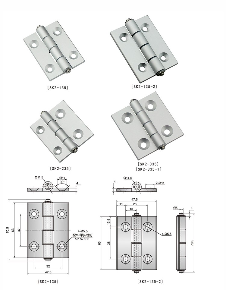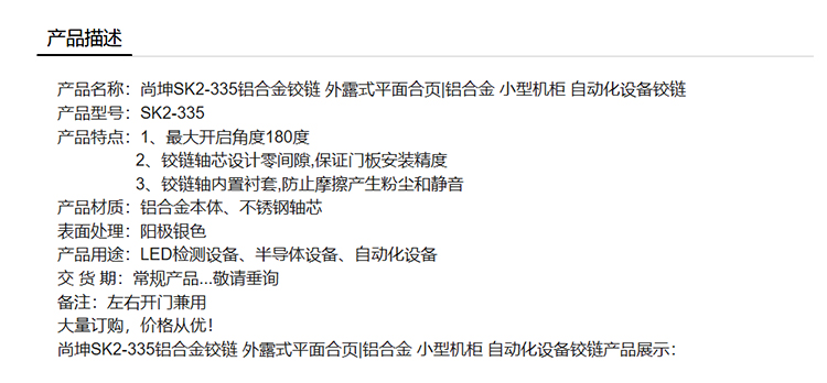 尚坤SK2-335铝合金铰链 外露式平面合页铝合金 小型机柜 自动化设备铰链