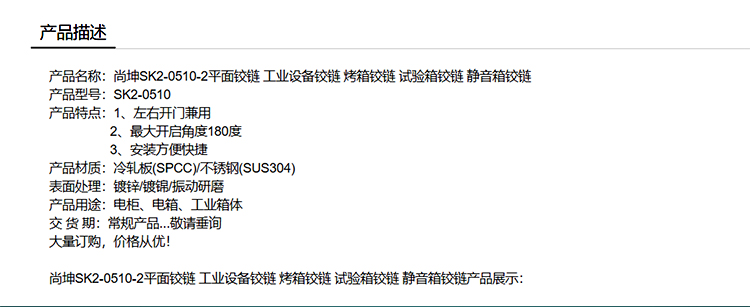 尚坤SK2-0510-2平面铰链 工业设备铰链 烤箱铰链 试验箱铰链 静音箱铰链