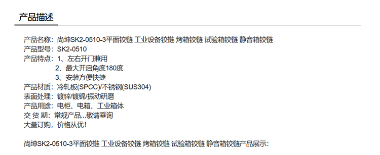 尚坤SK2-0510-3平面铰链 工业设备铰链 烤箱铰链 试验箱铰链 静音箱铰链
