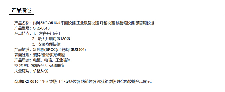 尚坤SK2-0510-4平面铰链 工业设备铰链 烤箱铰链 试验箱铰链 静音箱铰链