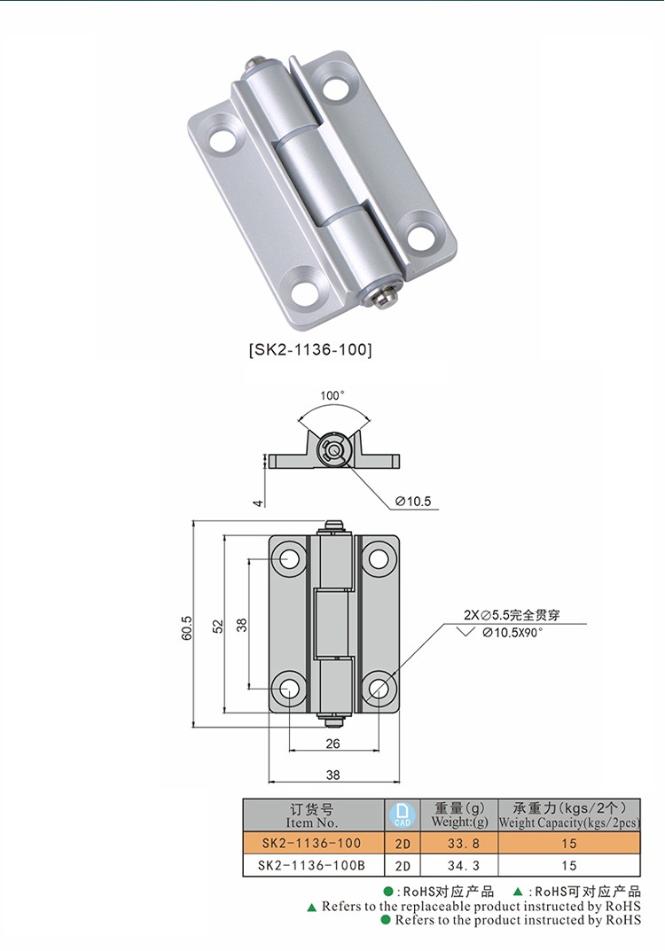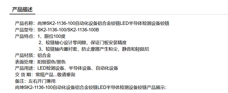 尚坤SK2-1136-100自动化设备铝合金铰链LED半导体检测设备铰链