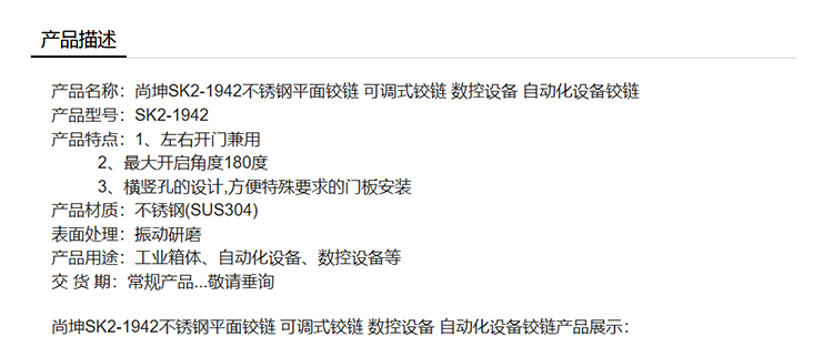 尚坤SK2-1942不锈钢平面铰链 可调式铰链 数控设备 自动化设备铰链
