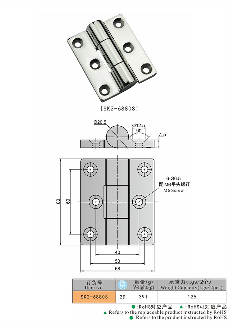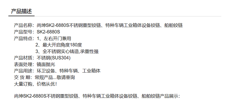 尚坤SK2-6880S不锈钢重型铰链、特种车辆工业箱体设备铰链、船舶铰链