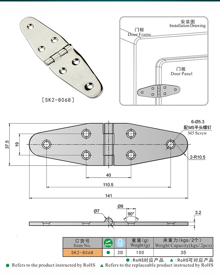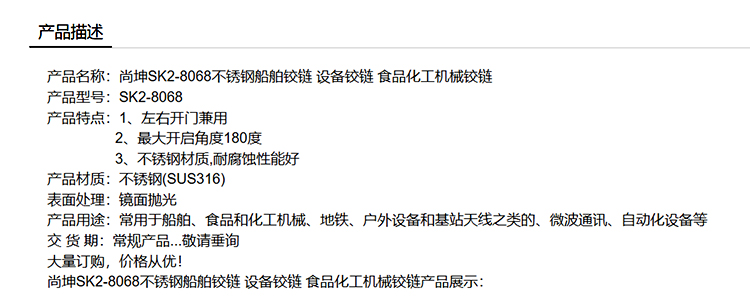 尚坤SK2-8068不锈钢船舶铰链 设备铰链 食品化工机械铰链