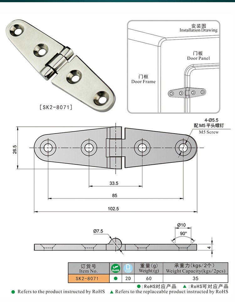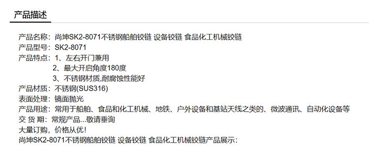 尚坤SK2-8071不锈钢船舶铰链 设备铰链 食品化工机械铰链