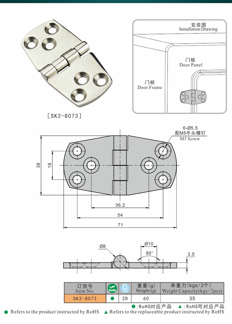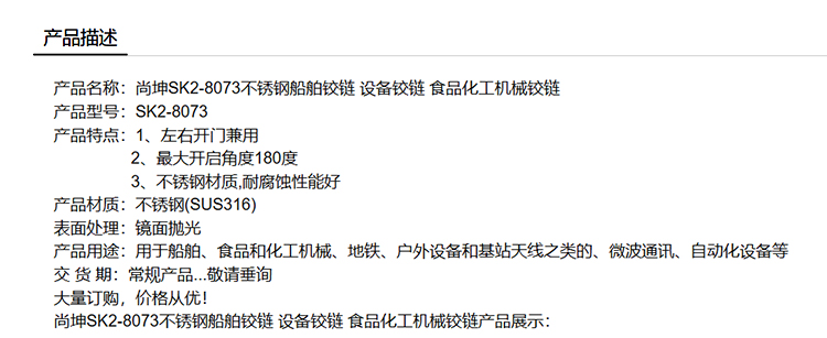 尚坤SK2-8073不锈钢船舶铰链 设备铰链 食品化工机械铰链