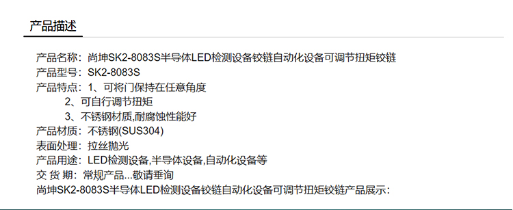 尚坤SK2-8083S半导体LED检测设备铰链自动化设备可调节扭矩铰链