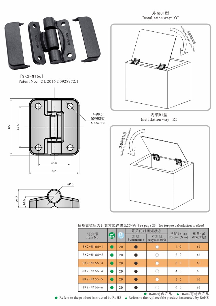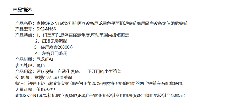尚坤SK2-N166饮料机医疗设备尼龙黑色平面扭矩铰链商用厨房设备定值阻尼铰链