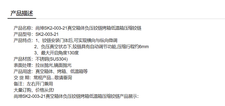 尚坤SK2-003-21真空箱体负压铰链烤箱低温箱压缩铰链
