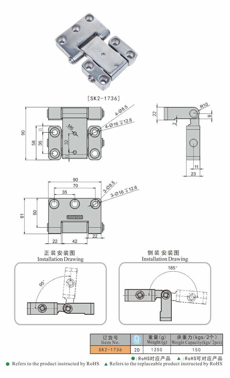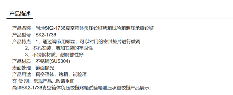 尚坤SK2-1736真空箱体负压铰链烤箱试验箱泄压承重铰链
