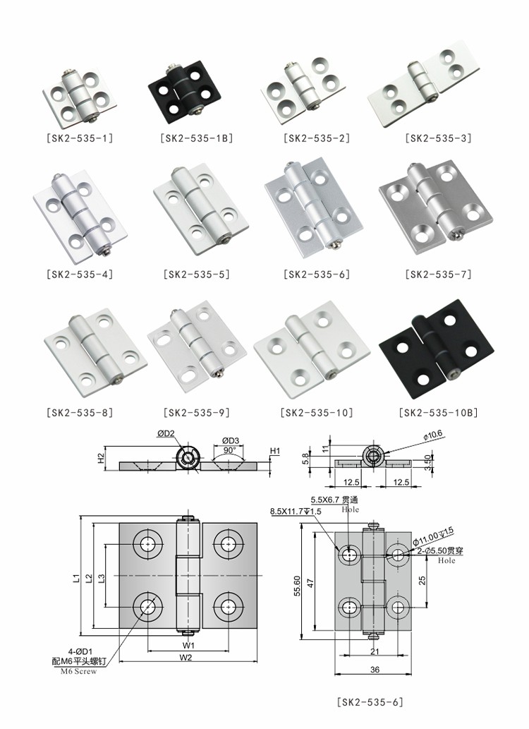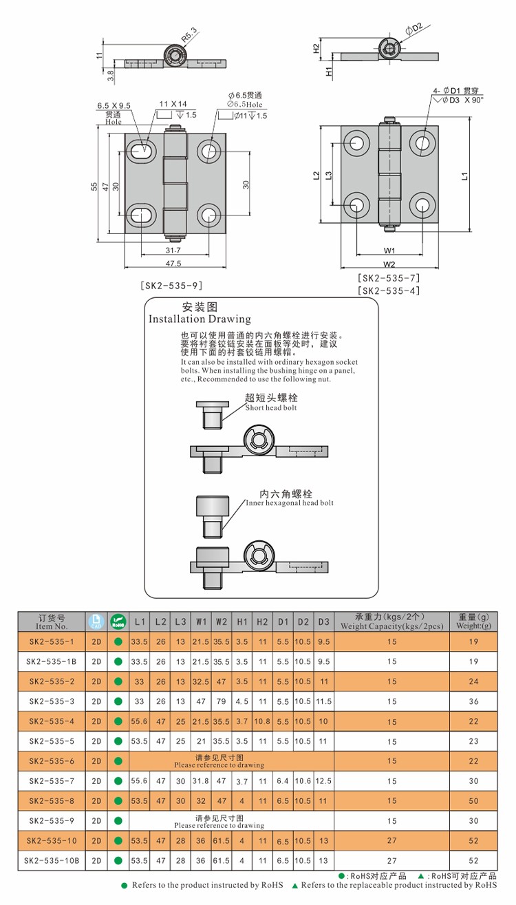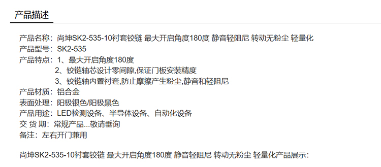 尚坤SK2-535-10衬套铰链 最大开启角度180度 静音轻阻尼 转动无粉尘 轻量化