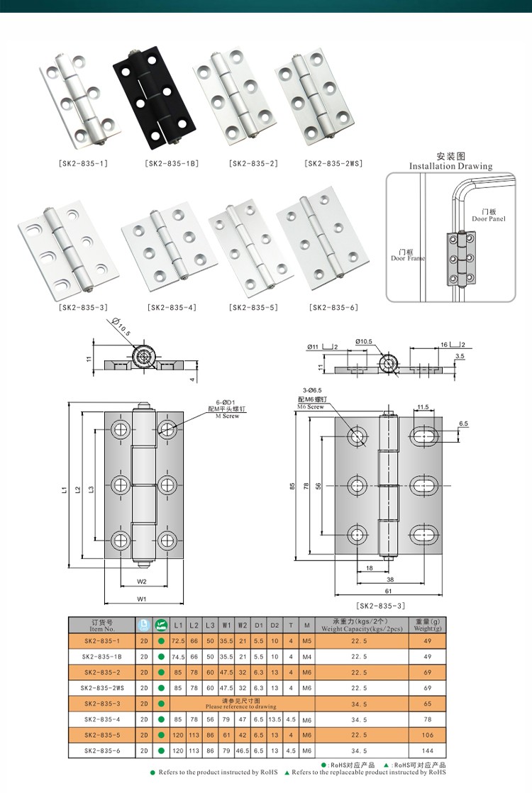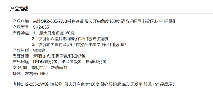 尚坤SK2-835-2WS衬套铰链 最大开启角度180度 静音轻阻尼 转动无粉尘 轻量化‘