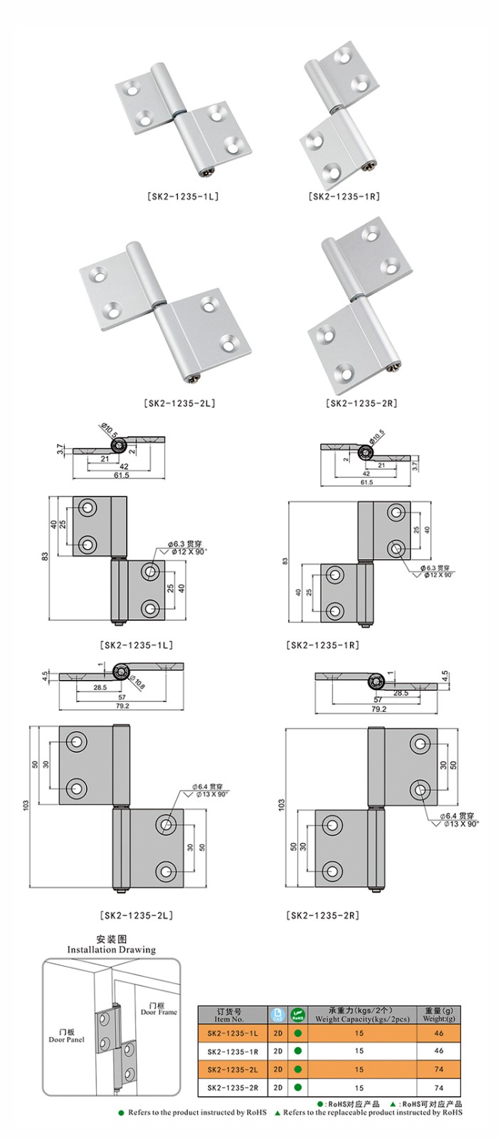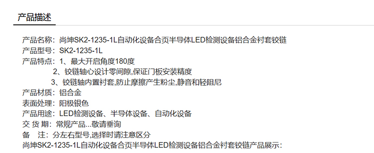 尚坤SK2-1235-1L自动化设备合页半导体LED检测设备铝合金衬套铰链
