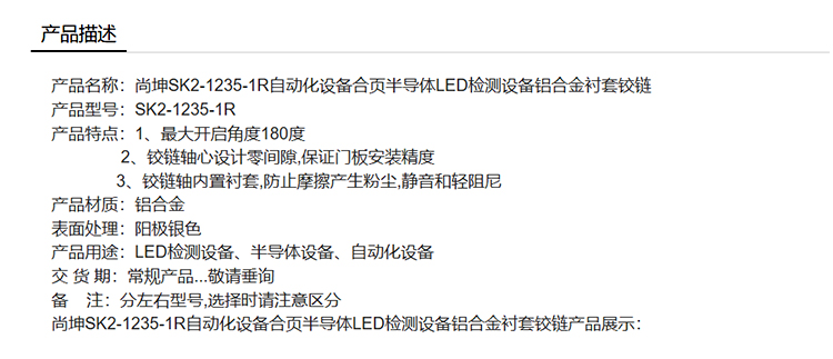 尚坤SK2-1235-1R自动化设备合页半导体LED检测设备铝合金衬套铰链