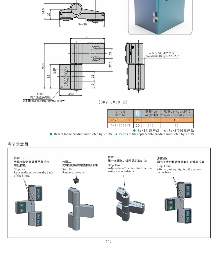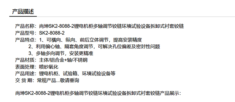 尚坤SK2-8088-2锂电机柜多轴调节铰链环境试验设备拆卸式衬套铰链