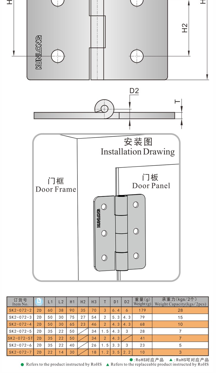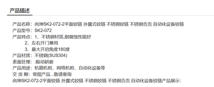 尚坤SK2-072-2平面铰链 外露式铰链 不锈钢铰链 不锈钢合页 自动化设备铰链