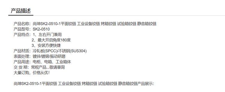 尚坤SK2-0510-1平面铰链 工业设备铰链 烤箱铰链 试验箱铰链 静音箱铰链