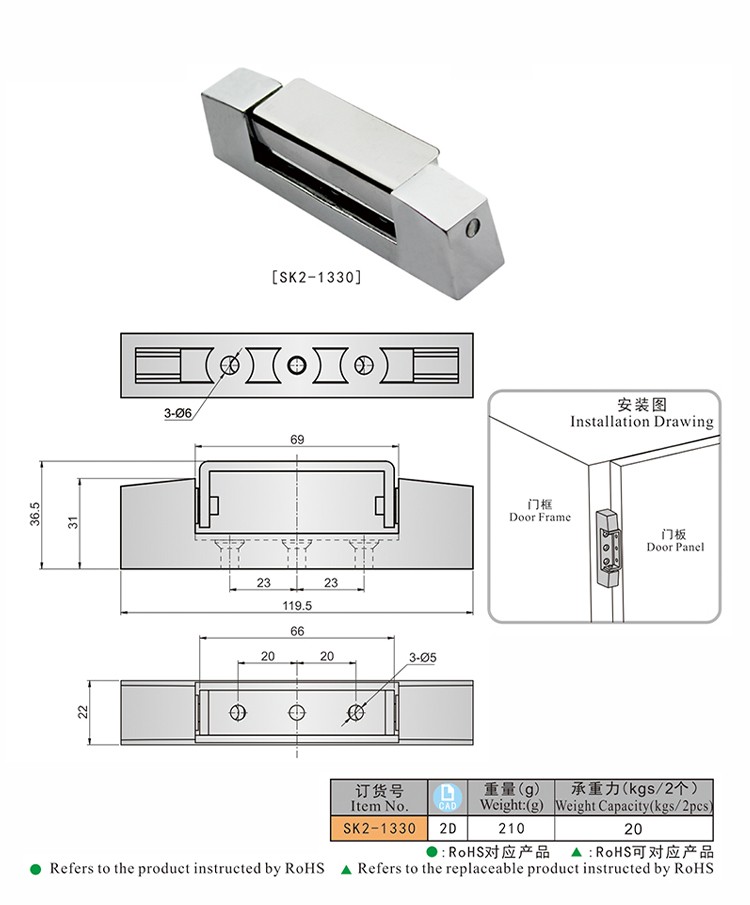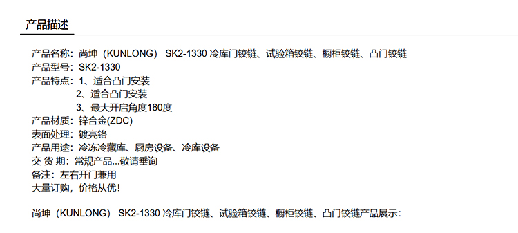 尚坤(KUNLONG) SK2-1330 冷库门铰链、试验箱铰链、橱柜铰链、凸门铰链