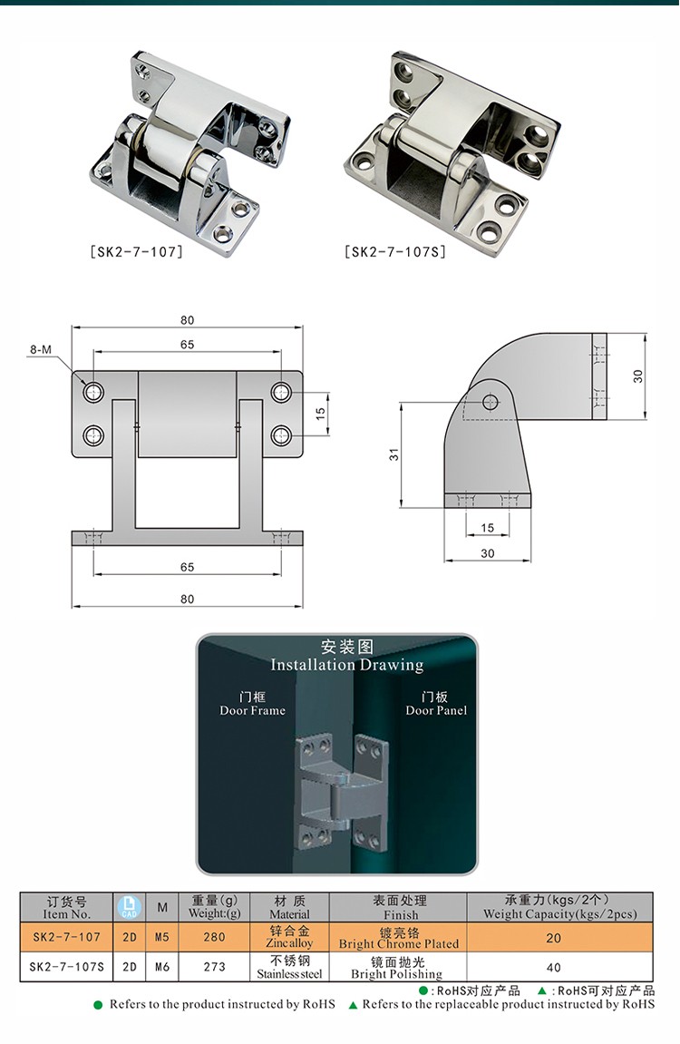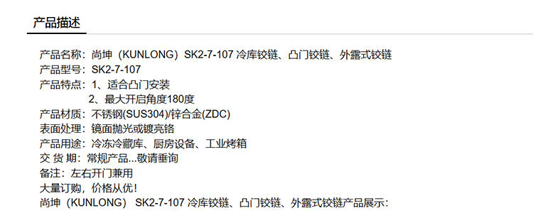 尚坤(KUNLONG)SK2-7-107 冷库铰链、凸门铰链、外露式铰链