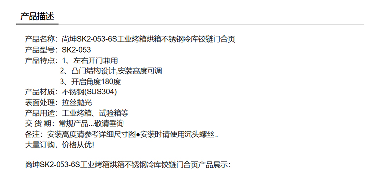 尚坤SK2-053-6S工业烤箱烘箱不锈钢冷库铰链门合页