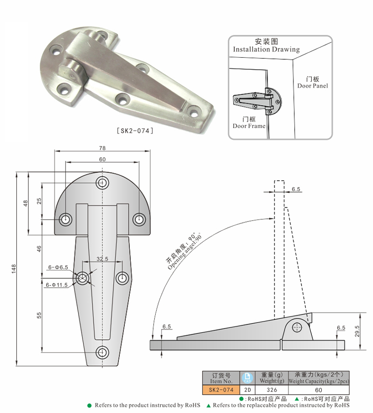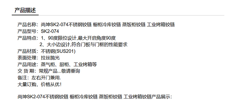 尚坤SK2-074不锈钢铰链 橱柜冷库铰链 蒸饭柜铰链 工业烤箱铰链