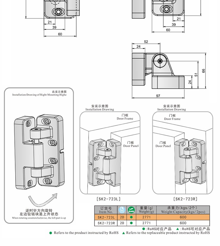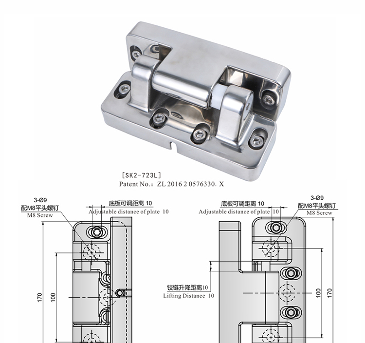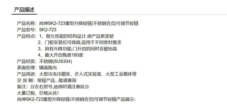 尚坤SK2-723重型升降铰链不锈钢合页可调节铰链