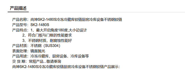 尚坤SK2-1480S冷冻冷藏库铰链厨房冷库设备不锈钢铰链