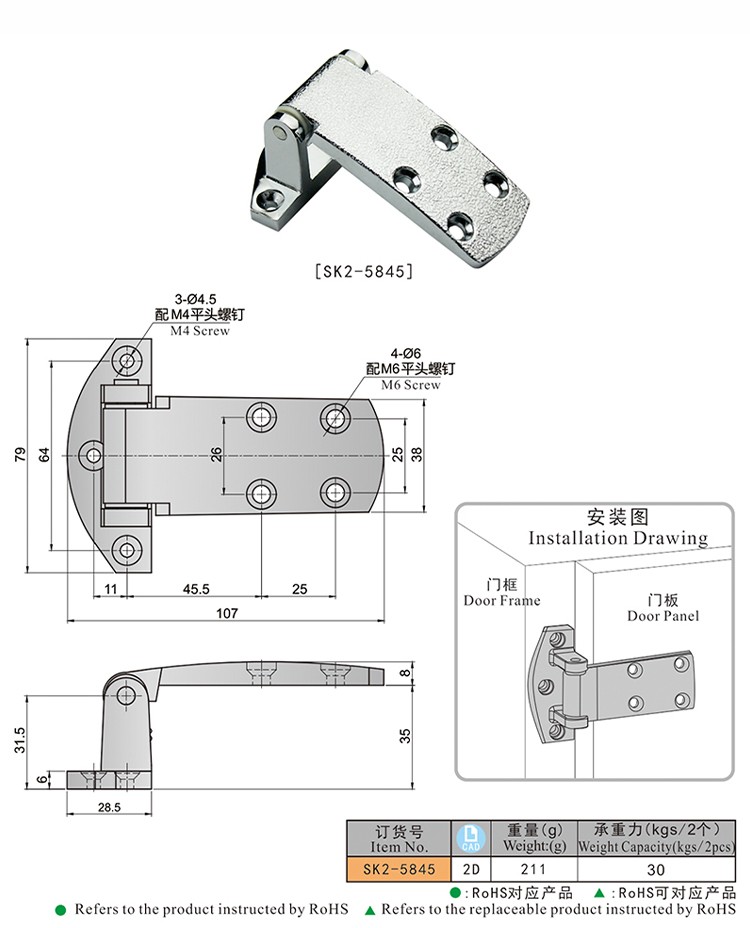 尚坤SK2-5845 冷库铰链、凸门铰链、冷库门铰链、试验箱铰链