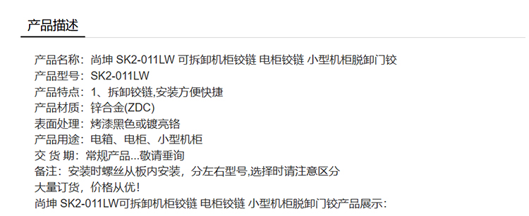 尚坤 SK2-011LW可拆卸机柜铰链 电柜铰链 小型机柜脱卸门铰