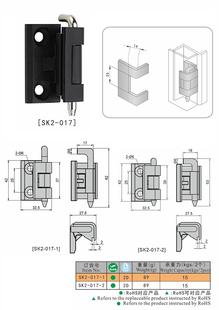 尚坤 SK2-017-1-2 插销铰链、隐藏式拆卸铰链、控制箱拆卸铰链