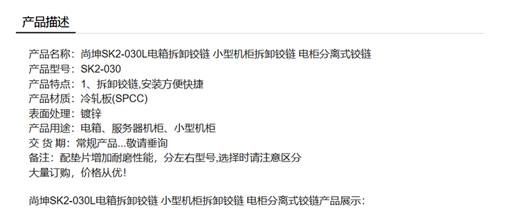 尚坤 SK2-030L 电箱拆卸铰链 小型机柜拆卸铰链 电柜分离式铰链