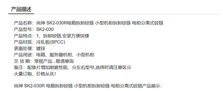 尚坤 SK2-030R 电箱拆卸铰链 小型机柜拆卸铰链 电柜分离式铰链