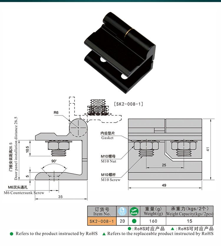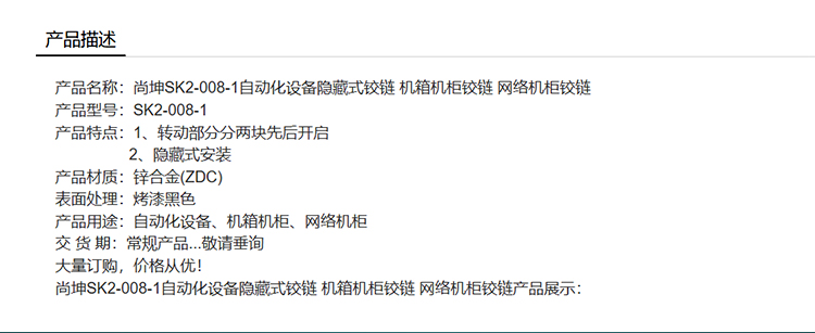 尚坤SK2-008-1自动化设备隐藏式铰链 机箱机柜铰链 网络机柜铰链