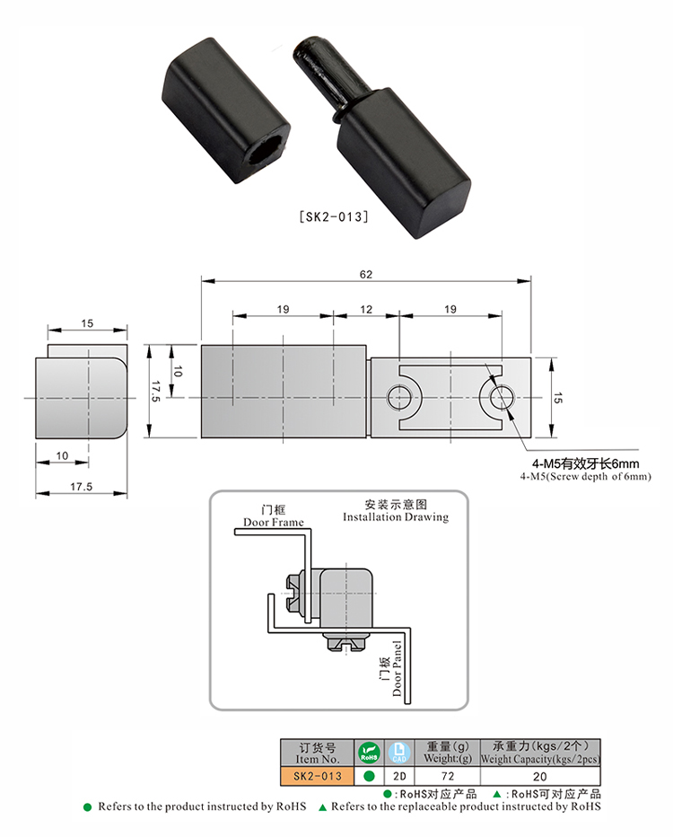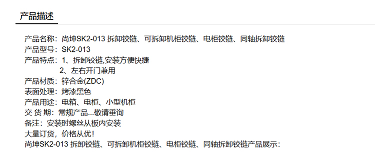 尚坤SK2-013 拆卸铰链、可拆卸机柜铰链、电柜铰链、同轴拆卸铰链