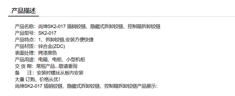 尚坤SK2-017 插销铰链、隐藏式拆卸铰链、控制箱拆卸铰链