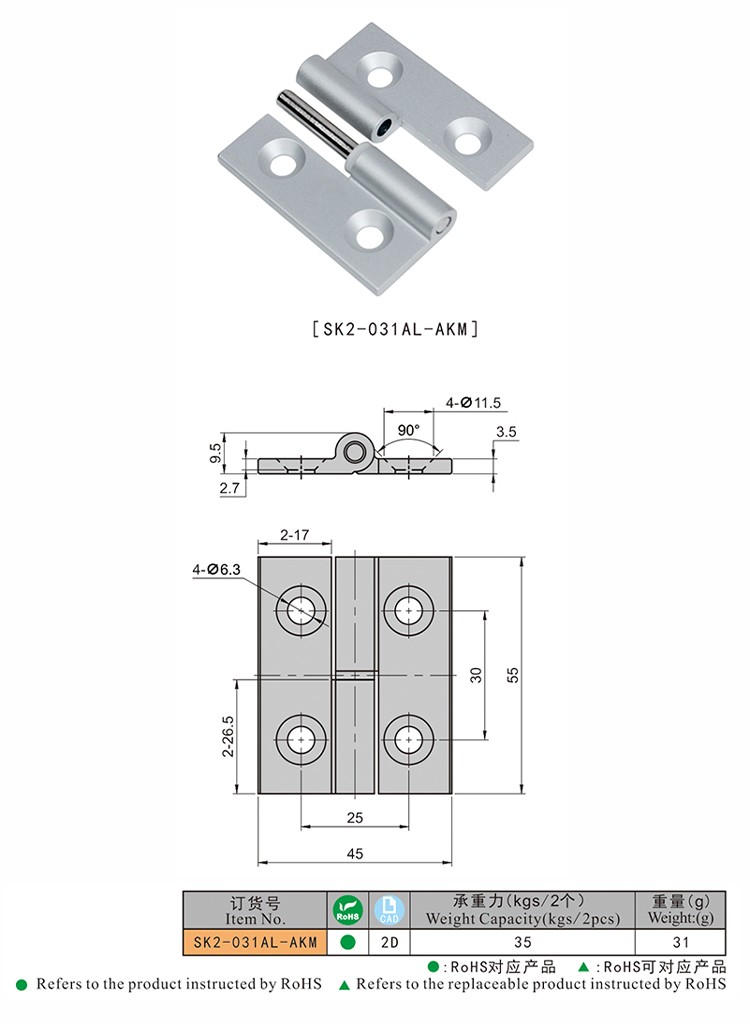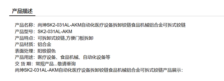 尚坤SK2-031AL-AKM自动化医疗设备拆卸铰链食品机械铝合金可拆式铰链