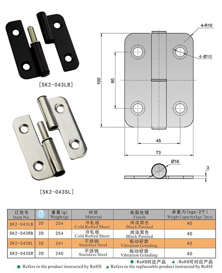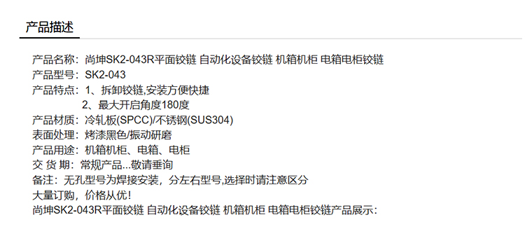 尚坤SK2-043R平面铰链 自动化设备铰链 机箱机柜 电箱电柜铰链