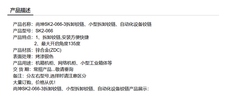 尚坤SK2-066-3小型拆卸铰链、自动化设备铰链、分离式铰链、平面铰链、脱卸铰链