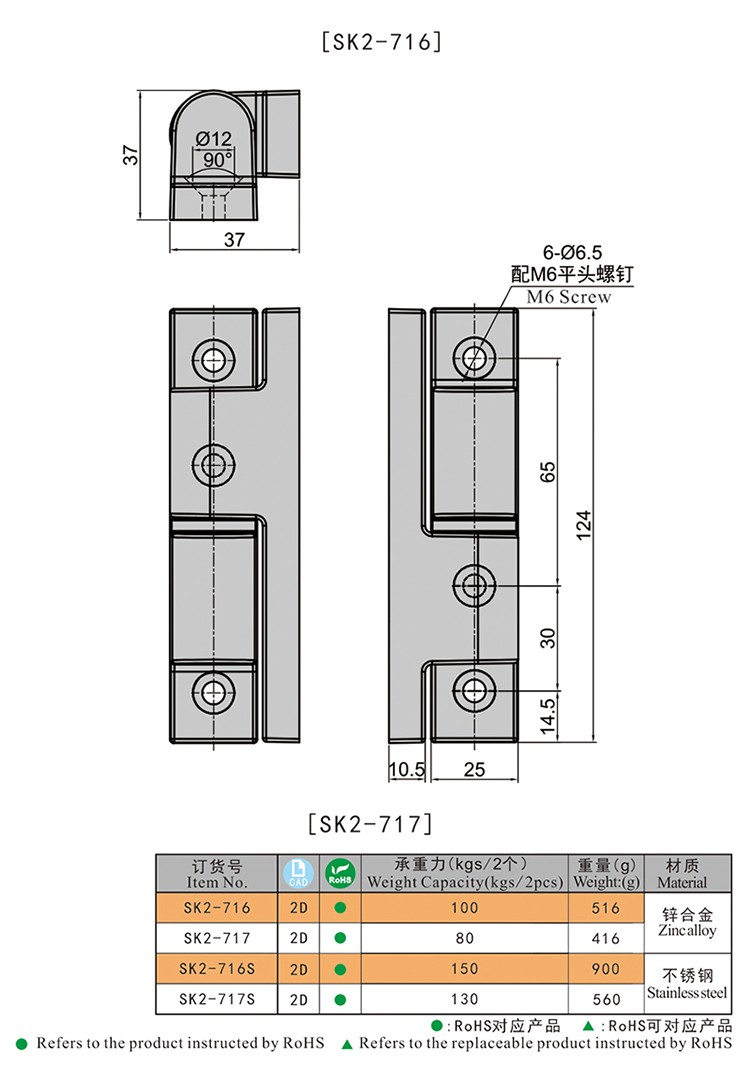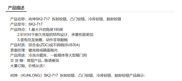 尚坤SK2-717拆卸门铰凸门铰链冷库铰链脱卸合页烤箱铰链