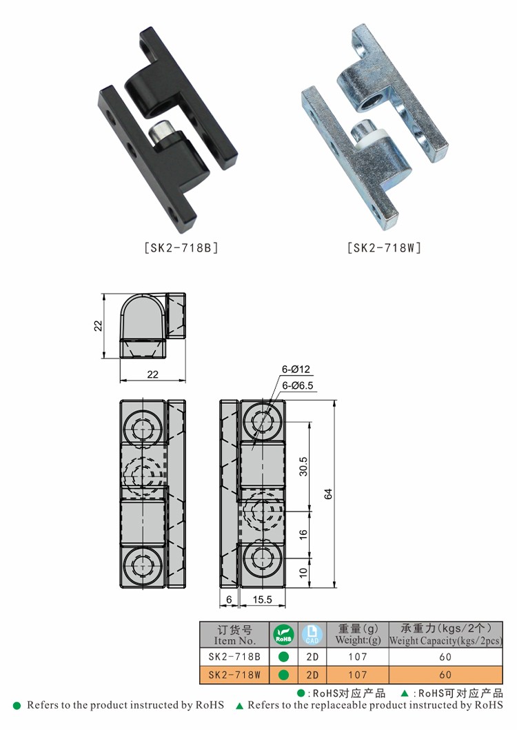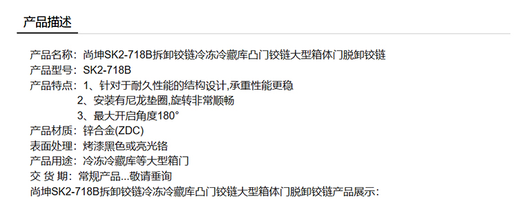 尚坤SK2-718B拆卸铰链冷冻冷藏库凸门铰链大型箱体门脱卸铰链