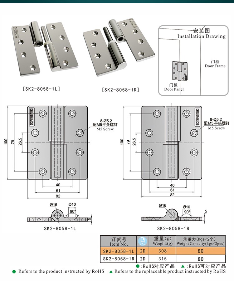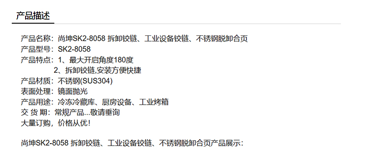 尚坤SK2-8058 拆卸铰链、工业设备铰链、不锈钢脱卸合页