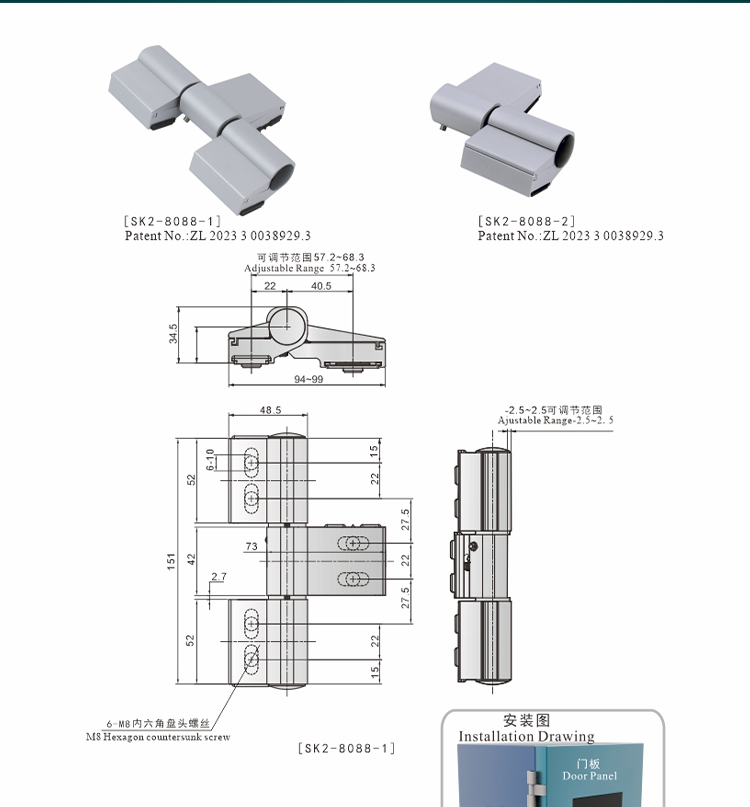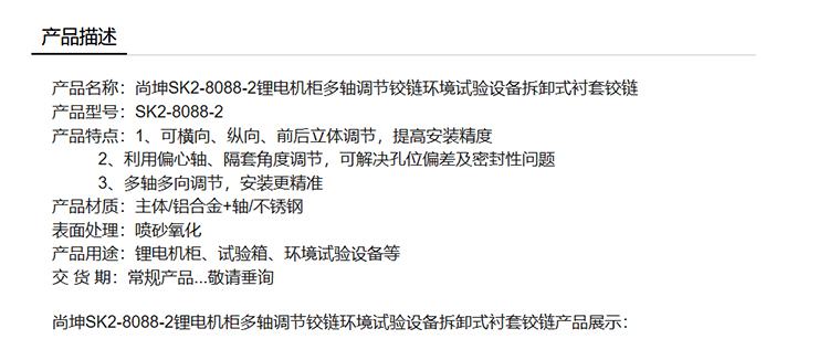 尚坤SK2-8088-2锂电机柜多轴调节铰链环境试验设备拆卸式衬套铰链
