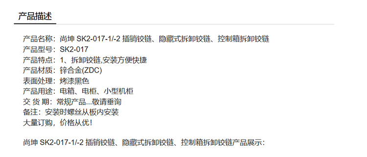 尚坤 SK2-017-1-2 插销铰链、隐藏式拆卸铰链、控制箱拆卸铰链