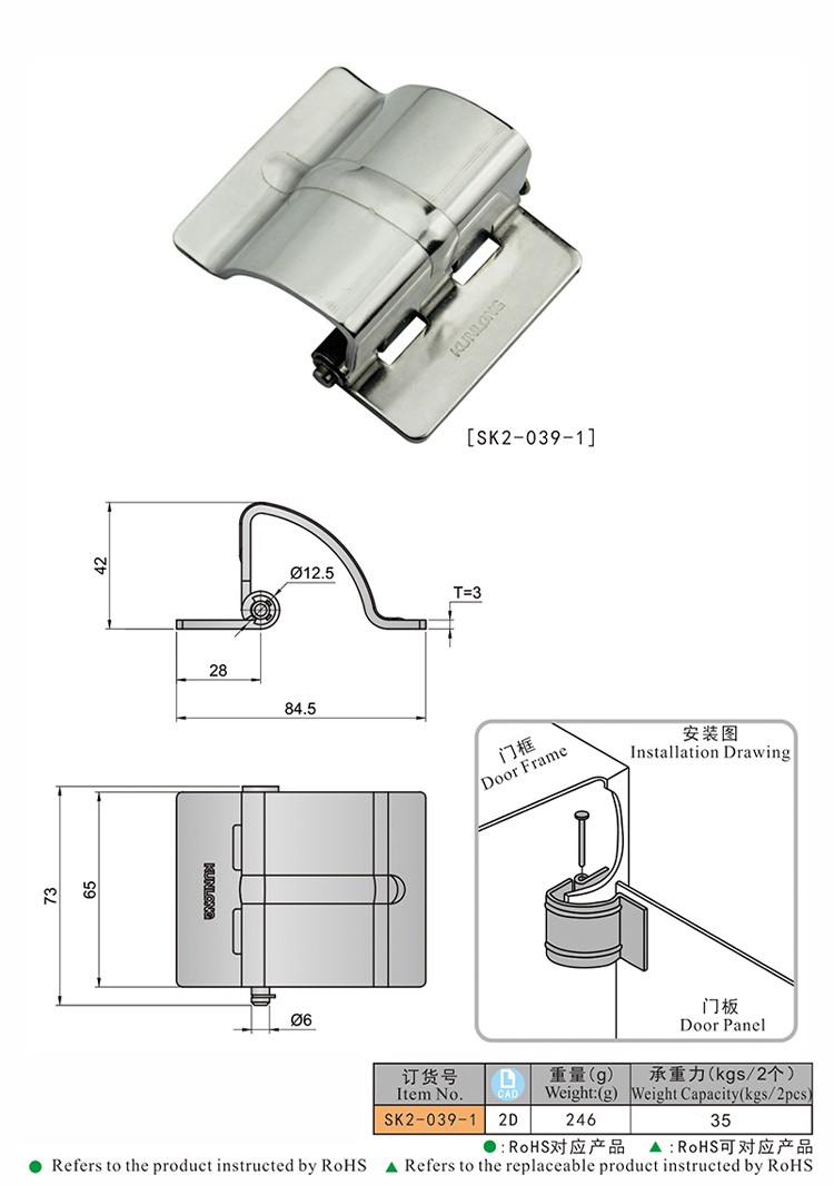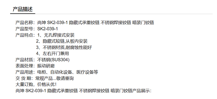 尚坤 SK2-039-1 隐藏式承重铰链 不锈钢焊接铰链 暗装门铰链