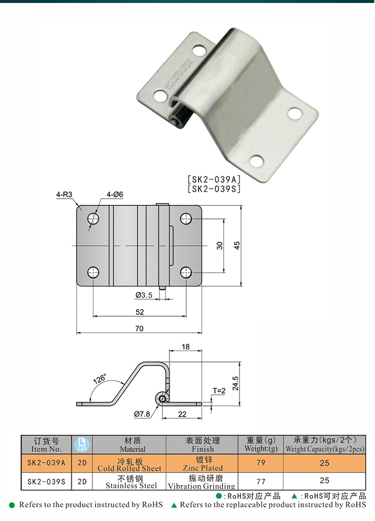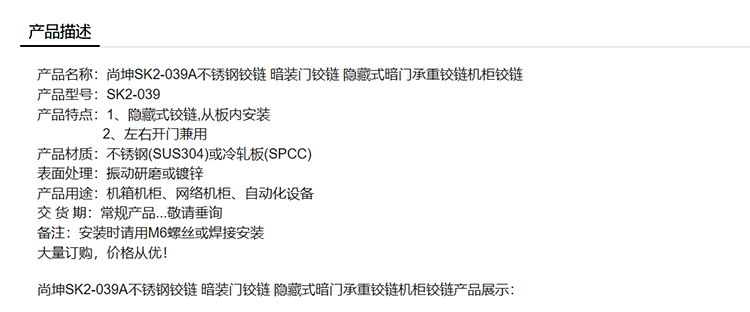尚坤SK2-039A不锈钢铰链 暗装门铰链 隐藏式暗门承重铰链机柜铰链