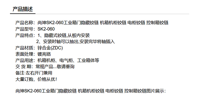 尚坤SK2-060工业箱门隐藏铰链 机箱机柜铰链 电柜铰链 控制箱铰链