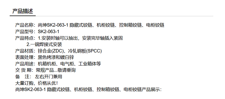 尚坤SK2-063-1 隐藏式铰链、机柜铰链、控制箱铰链、电柜铰链