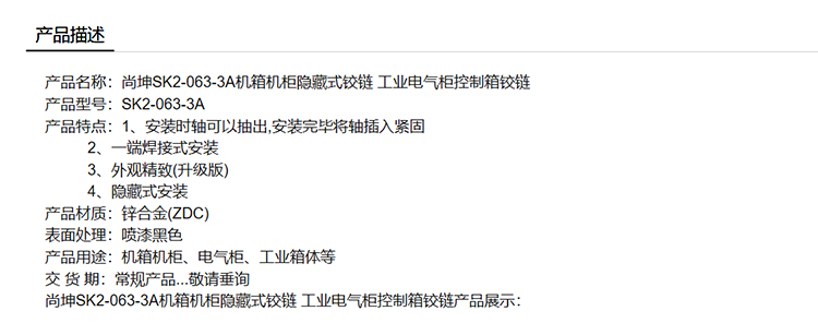 尚坤SK2-063-3A机箱机柜隐藏式铰链 工业电气柜控制箱铰链