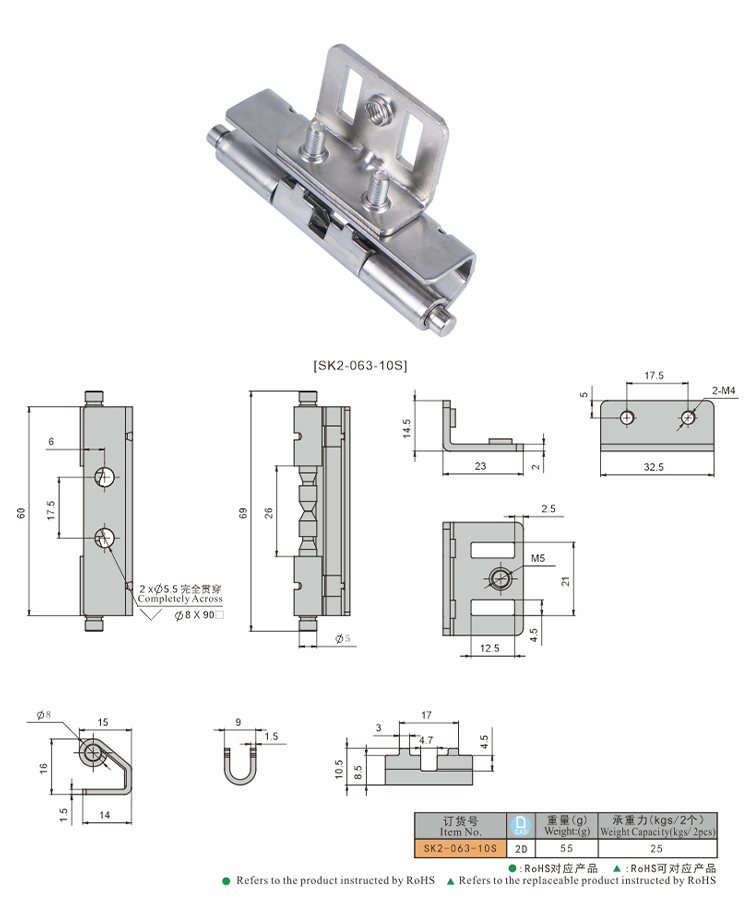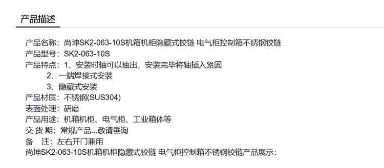 尚坤SK2-063-10S机箱机柜隐藏式铰链 电气柜控制箱不锈钢铰链